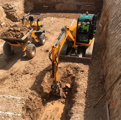 EXCAVACIÓN MASIVA es un movimiento de tierra que consiste en la extracción de suelo. Puede ser manual o con maquinaria pesada, esto dependerá del tipo de terreno y del volumen, consiste en la remoción de grandes volúmenes de suelo natural. Se realiza complementariamente de forma mecanizada (excavadoras) y manual en la construcción de subterráneos de edificios, caminos, muros de contención, etc.